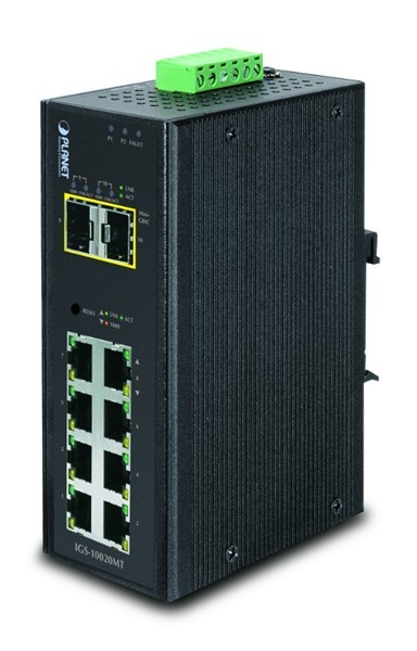 10-ports administreret switch 8 x 10/100/1000Mbit RJ45. Fiber 2 x 100/1000 Mbit SFP, -40 - +75°C 12-48VDC, 24VAC