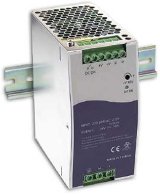 24VDC 1,7A (40Watt) strømforsyning fra 100-240VAC, DIN-skinne
