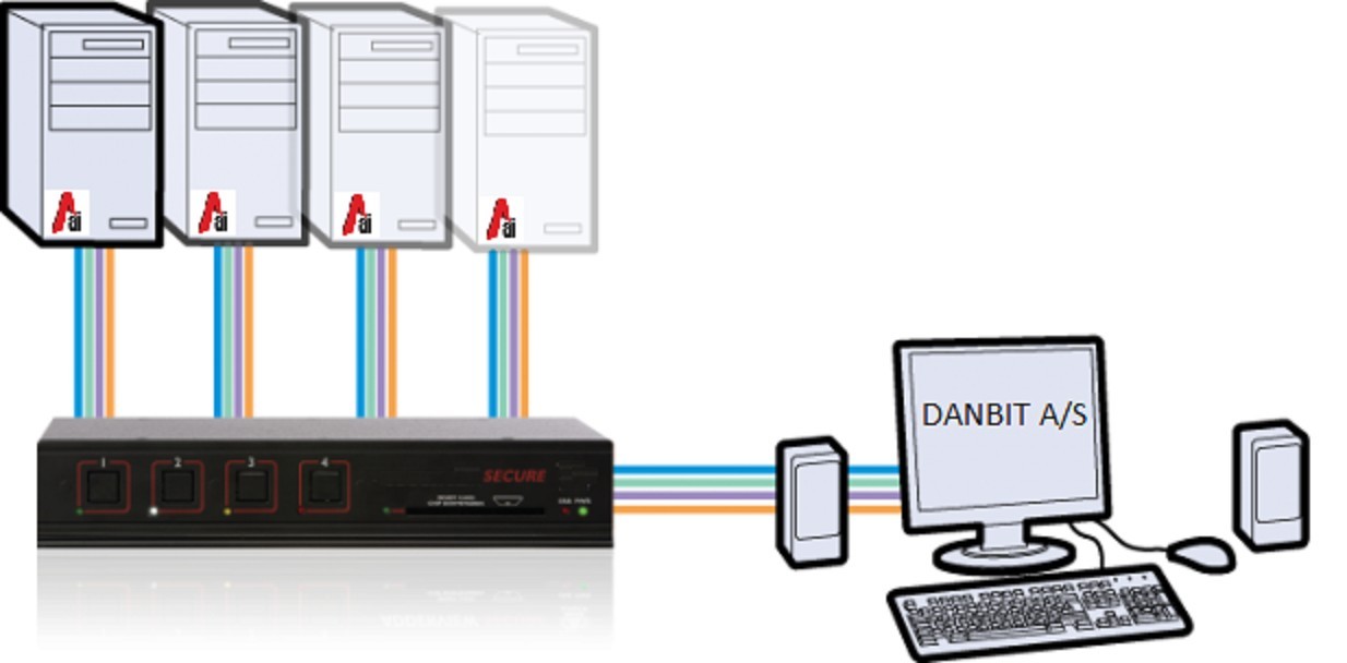 4 ports Professionel KVM omskifter, VGA, PS/2 Adder View AVG4, 1900 x 1440, Hot-Key