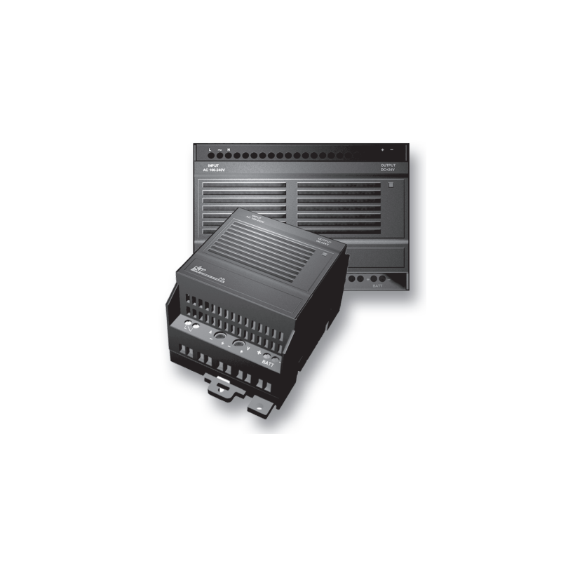 12VDC 5A (60Watt) strømforsyning. Spænding justeres mellem 10.8V og 13.2V fra 85-264VAC, DIN-skinne.