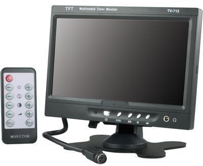 7" TFT-farveskærm med fjernbetjening og højtalere 12V og 230V, 800 x 480 16:10 format