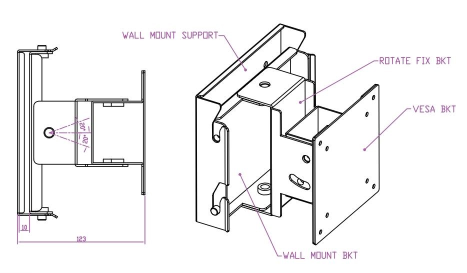 Vægmontering VESA-beslag VESA 75/100 rustfrit stål 304 skærm- eller panel-pc-vægbeslag