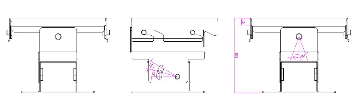 Industrielt VESA-beslag i rustfrit stål til panel-pc'er og industrielle skærme.