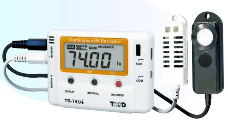 LOG-74UI modellen kan ikke kun måle og registrere UV, belysning, temperatur og fugtighed, men kan også registrere og vise kumulativ UV og belysning. Det er perfekt til brug til beskyttelse af udstillinger og arkiver i museer og biblioteker.