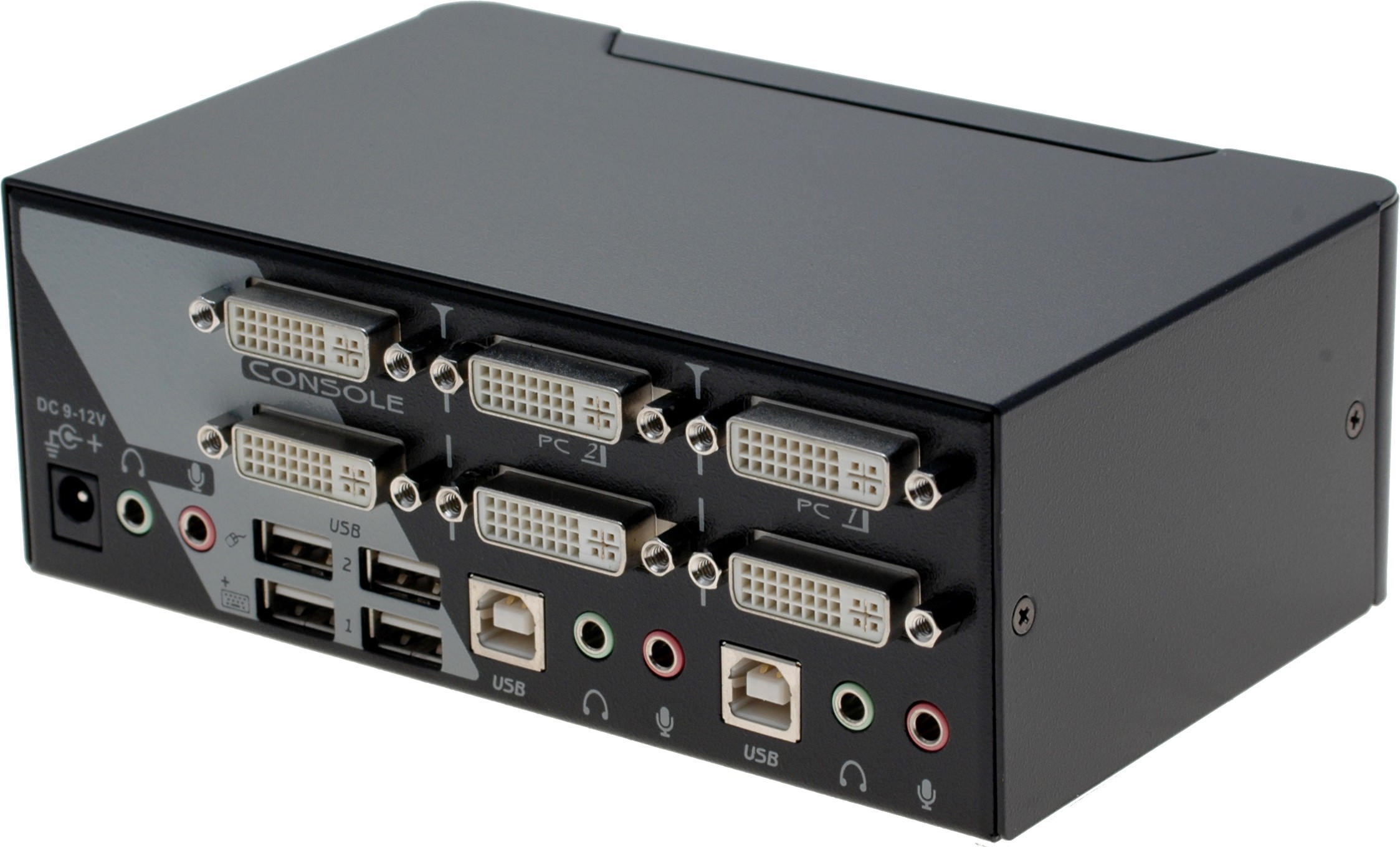 2 ports KVM switch, DVI-D (Dual Link), USB