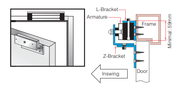 Z-beslag til DOOR-MAGNET-V8. 3 dele i extruderet aluminium. Til indadgående dør