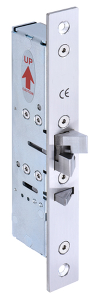 Elektrisk låsekasse til enkel- og dobbeltvirkende svingdør 272 kg. 24mm hus, 25mm face plate. 28mm stolpeblik, stål, 12/24VDC
