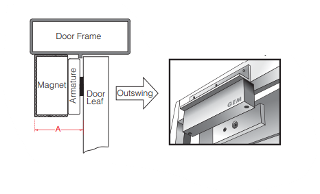 Elektronisk dørmagnet til 12/24VDC med automatisk omskiftning. Indendørs montering. Holdekraft op til 364 kg