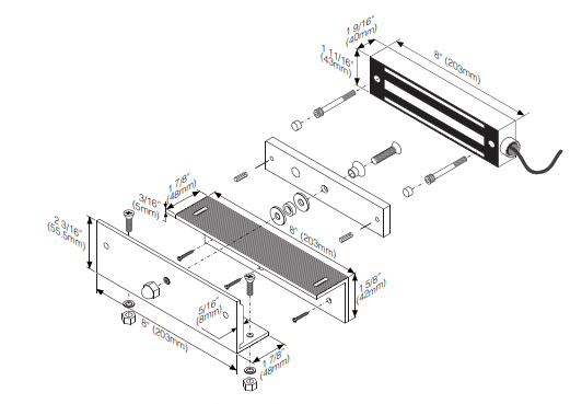 Vandtæt Mini Magnetisk dørlås, 272 Kg. Holdekraft, 12 / 24VDC automatisk - Høj sikkerhed.