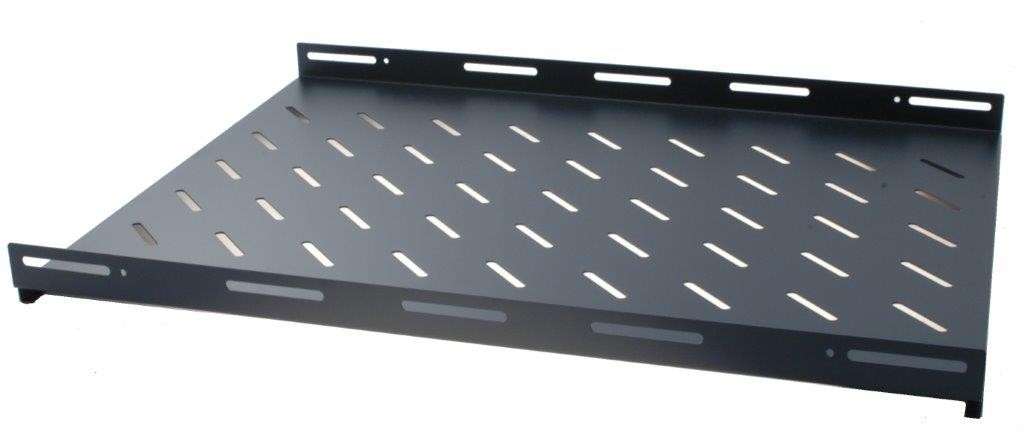 1U rackhylde til fastmontering, 65 x 49,5 x 5 cm, sort. Til 19” rackskab