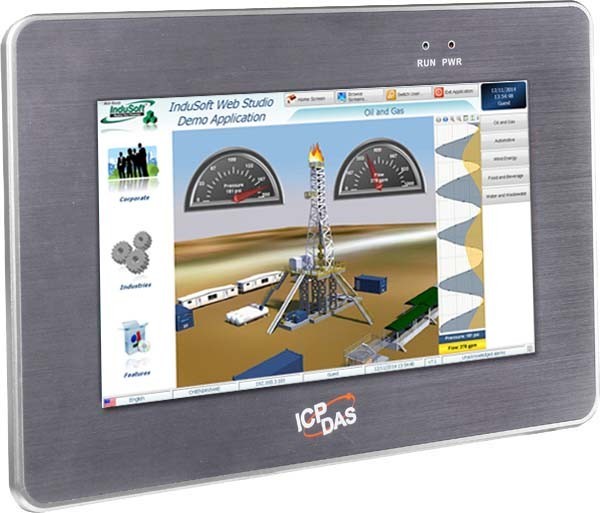 The IWS PAC series is the new generation WinCE 7.0 based InduSoft PAC of ICP DAS. It combines a RISC-based CPU board, TFT LCD touch screen to create a ruggedized, flat panel computer perfect for a variety of control and HMI applications.