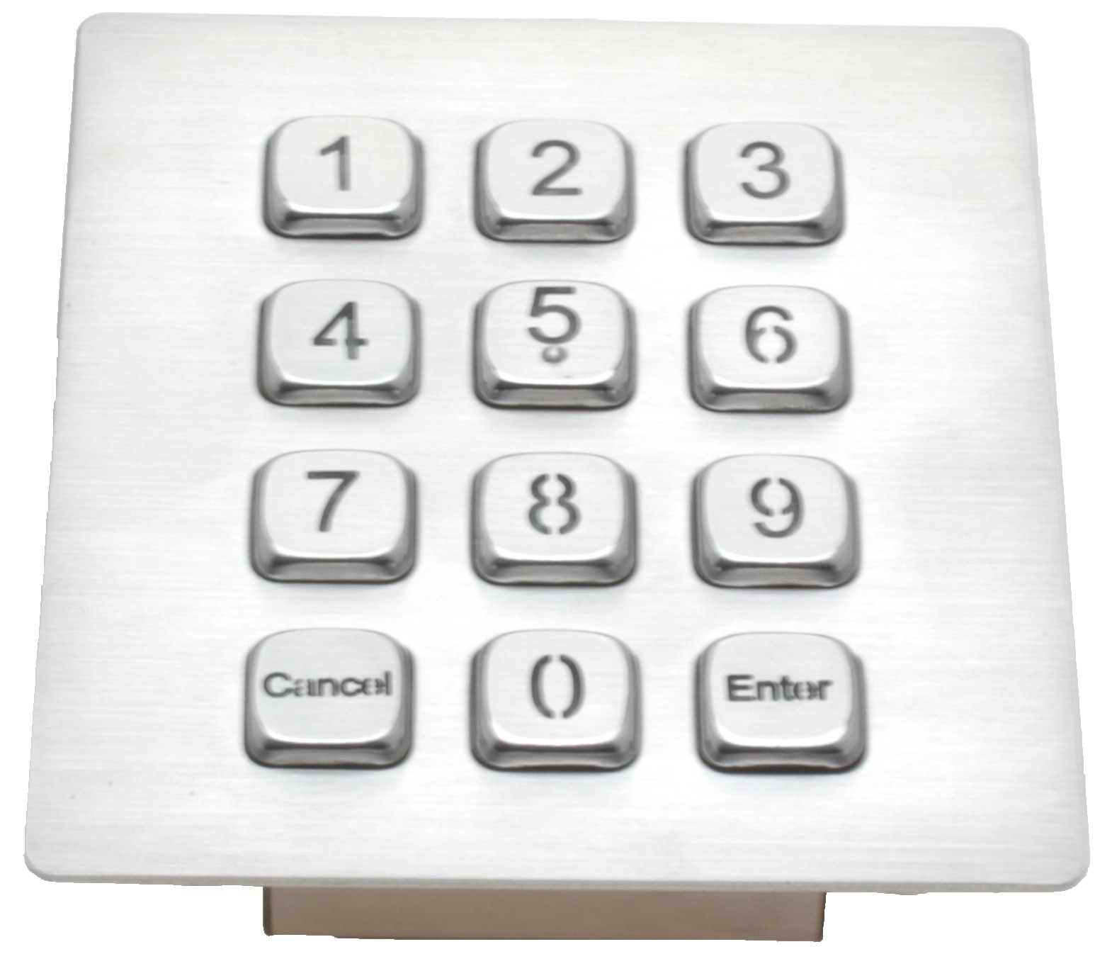 Strømforsynes via PS2, men har gennemgangs-stik, så PS2 tastatur kan bruges normalt. Er udstyret med ca. 3 meter fast monteret kabel med PS2-stik, samt DB9 hunstik til RS232. Er udført i rustfrit stål og er IP65 tæt. Har klart blåt lys i tasterne.