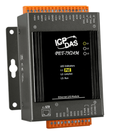 ETHIO4AI2AO7IO-P-I er en dataovervågningsenhed med høj hastighed med en indbygget Ethernet-kommunikationsport til dataoverførsel over et netværk og inkluderer 4 højhastigheds 24-bit differentielle analoge indgangskanaler (128 kHz sample and hold for alle 4 kanaler) , 2 analoge udgangskanaler, 3 digitale indgangskanaler, 4 digitale udgangskanaler og 1 encoder-indgangskanal.
