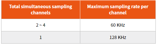 Hastighed 128kHz sample-frekvens for alle 4 indgange
