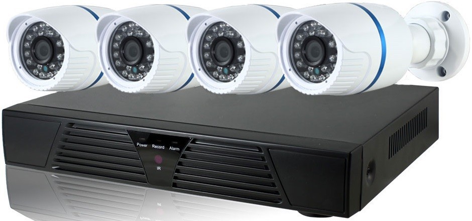 Video overvågningspakke med 4 overvågningskameraer og NVR, barebone 1.3MP kamera
