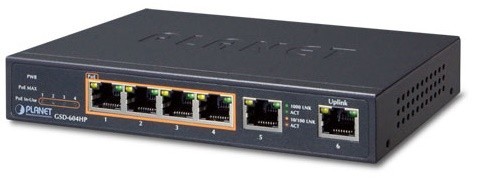6 ports switch 4 x 10/100/1000Mbit RJ45 PoE + 2 x 10/100/1000Mbit RJ45 uplink, Unmanaged, 56VDC