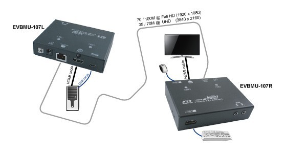 EVBMU-M110, 4K2K HDMI + USB KM Extender over HDBaseT (100M)