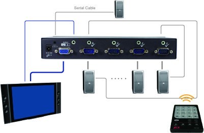 Select 1 VGA + Audio from 4 different VGA + Audio sources