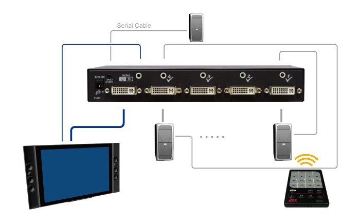 VSDA-S401, 4-Ports DVI Switch med Audio & RS232