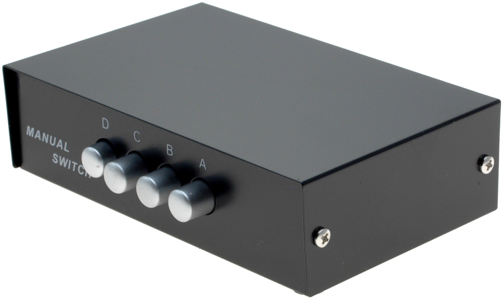 2 ports manuel VGA omskifterboks. 2 x DB15HD hun til/fra DB15HD hun. Mekanisk omskifter