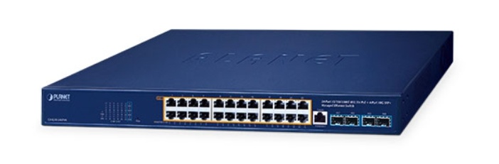 24 ports Managed switch 24 x 10/100/1000Mbit RJ45. Fiber 4 x 100/1000/2500Mbit/10G SFP slot, PoE++ (PoE Ultra 90W). 230VAC
