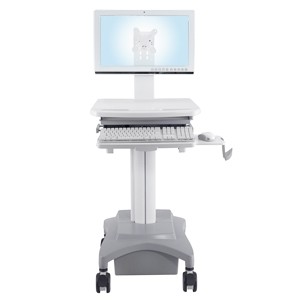 Tillad lægerne at passe patienten på plejeområdet. Højdejusterbar til plads til brugere af siddende og stående arbejdsstillinger. Slide-out tastaturbakke indeholder venstre til højre glidende musekasse. Let at rengøre design hjælper med at forhindre infektion. Organiseret kabelstyring giver et pænt udseende. Integrere med tilbehør til medicinsk udstyr til mange anvendelser.