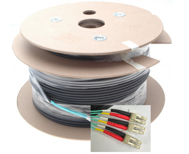 6 Core Armeret fiberkabel, Multi Mode, LC-LC, 130m, 50/125my, OM4, sort, LSZH, rund kappe