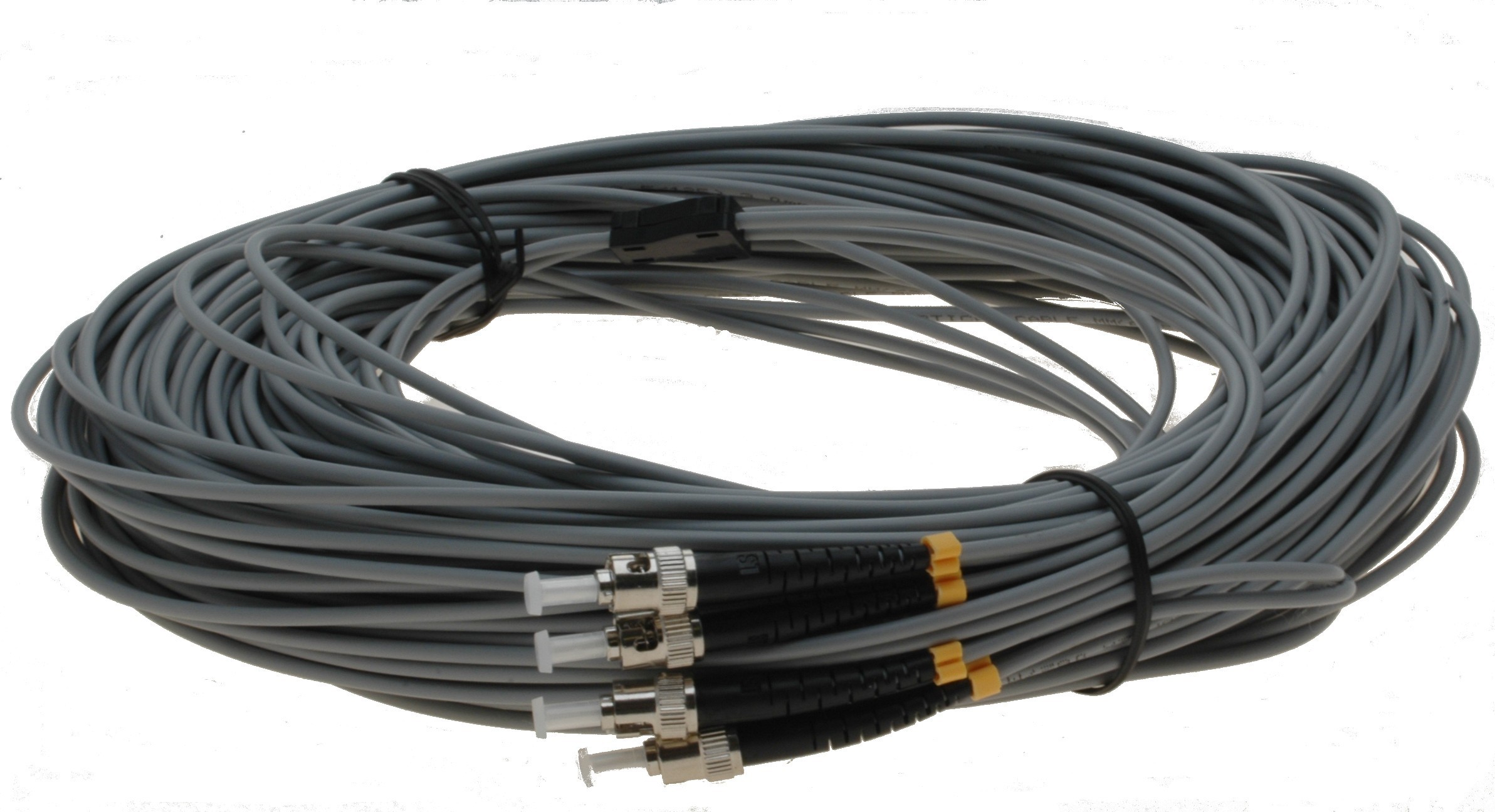 Armeret fiberkabel, Multimode, ST-ST, 50m, 62,5/125my, Sort, LSZH, Duplex 2 x ST stik i hver ende