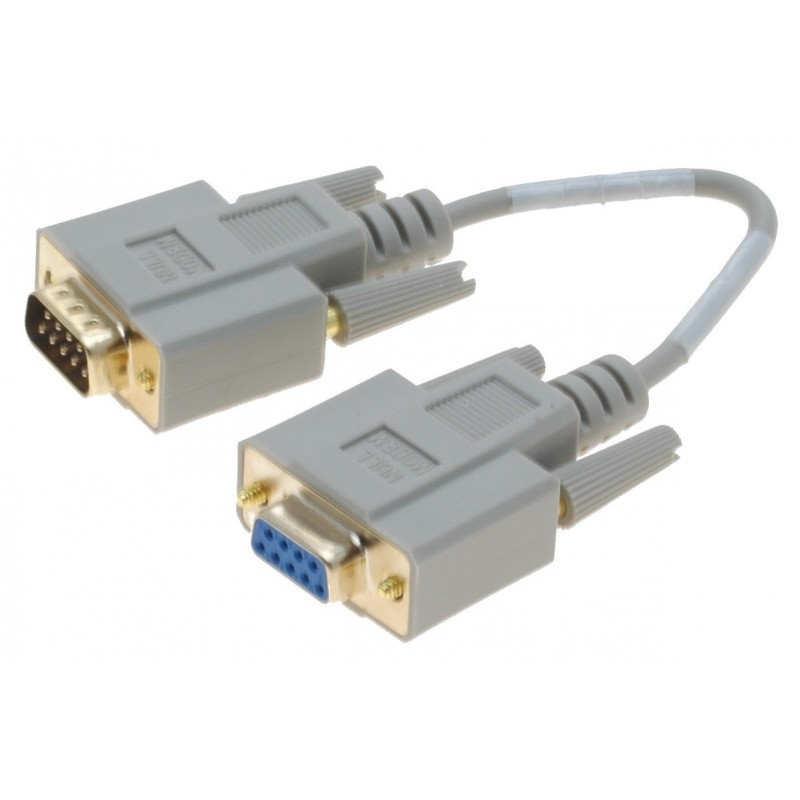 Null modem kabel 1 x DB9 han og 1 x DB9 hun, grå, 20 cm, skærm ikke forbundet til hun kappen