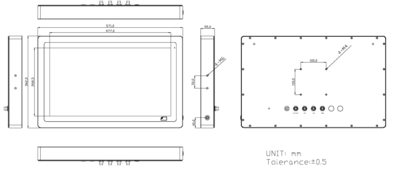 Panel PC 21.5" med 1000 nits, velegnet til sollys, med touch, rustfrit stål kabinet full IP66/IP69K