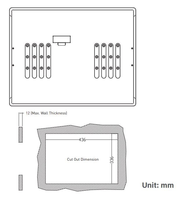 17" Monitor VESA panel mount TFT-LCD, Projected Capacitiv Touch (PCAP), IP65 Front, VGA, DVI-D, DisplayPort, 9~48VDC