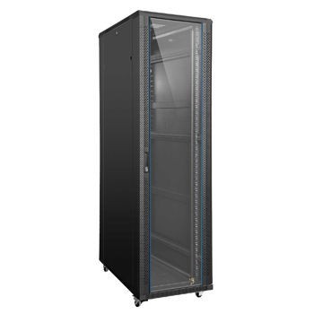 Sort 19" rackskab 32U høj og 80cm dyb m/ aftagelig glasdør med lås