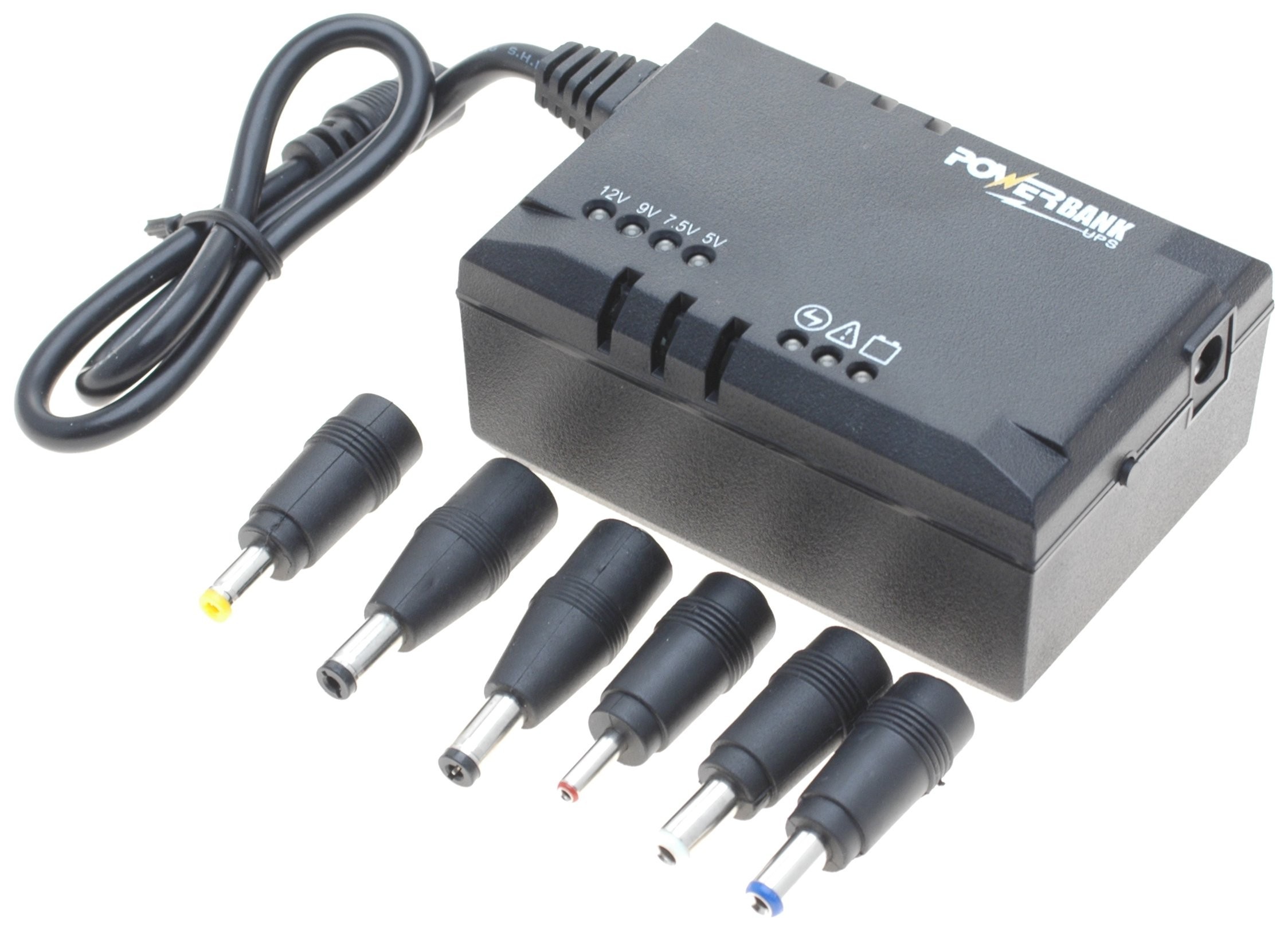 Mini UPS 5200mAh med valg af udgangsspænding 5V / 7,5V / 9V eller 12VDC. Maks. 2.1A. Ladespænding 5 - 12VDC
