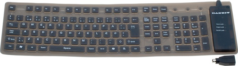 Bøjeligt IP65 tæt silikonetastatur - USB og PS/2, UK tegnsæt, grå