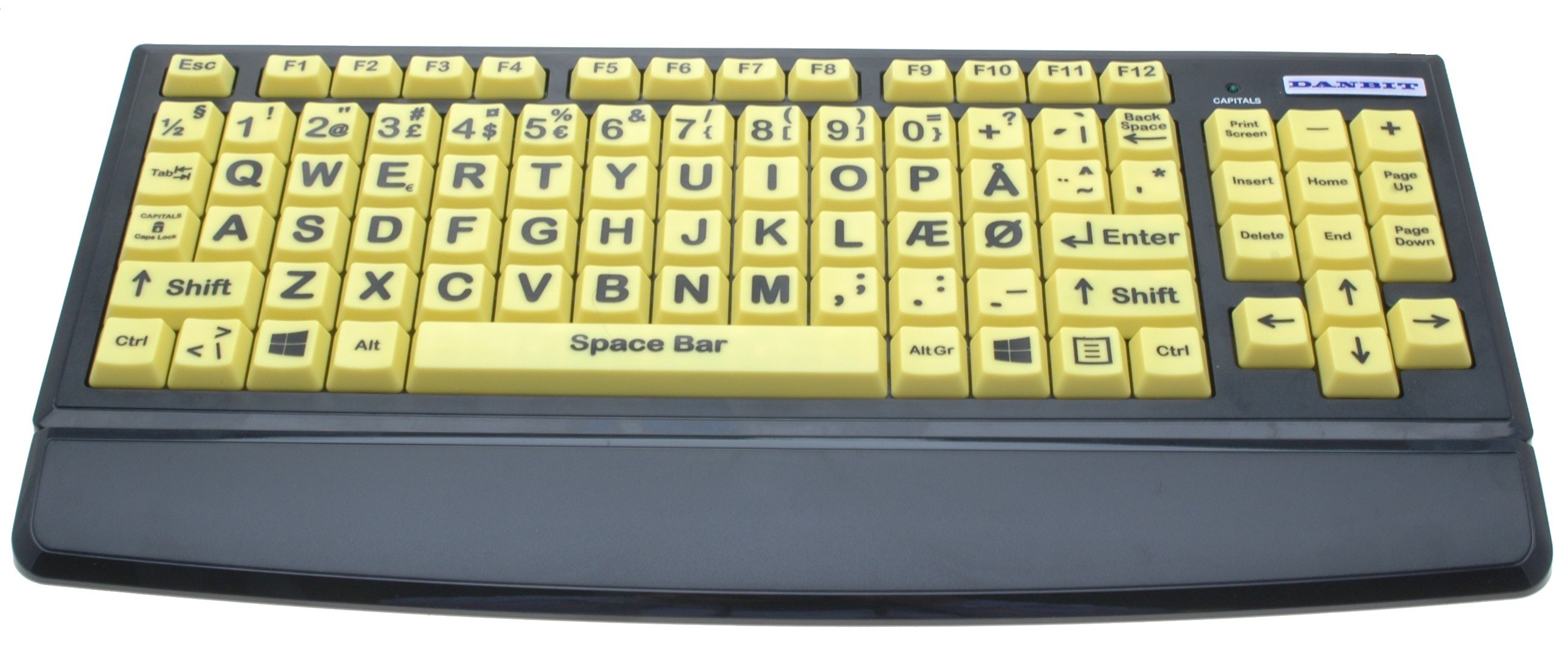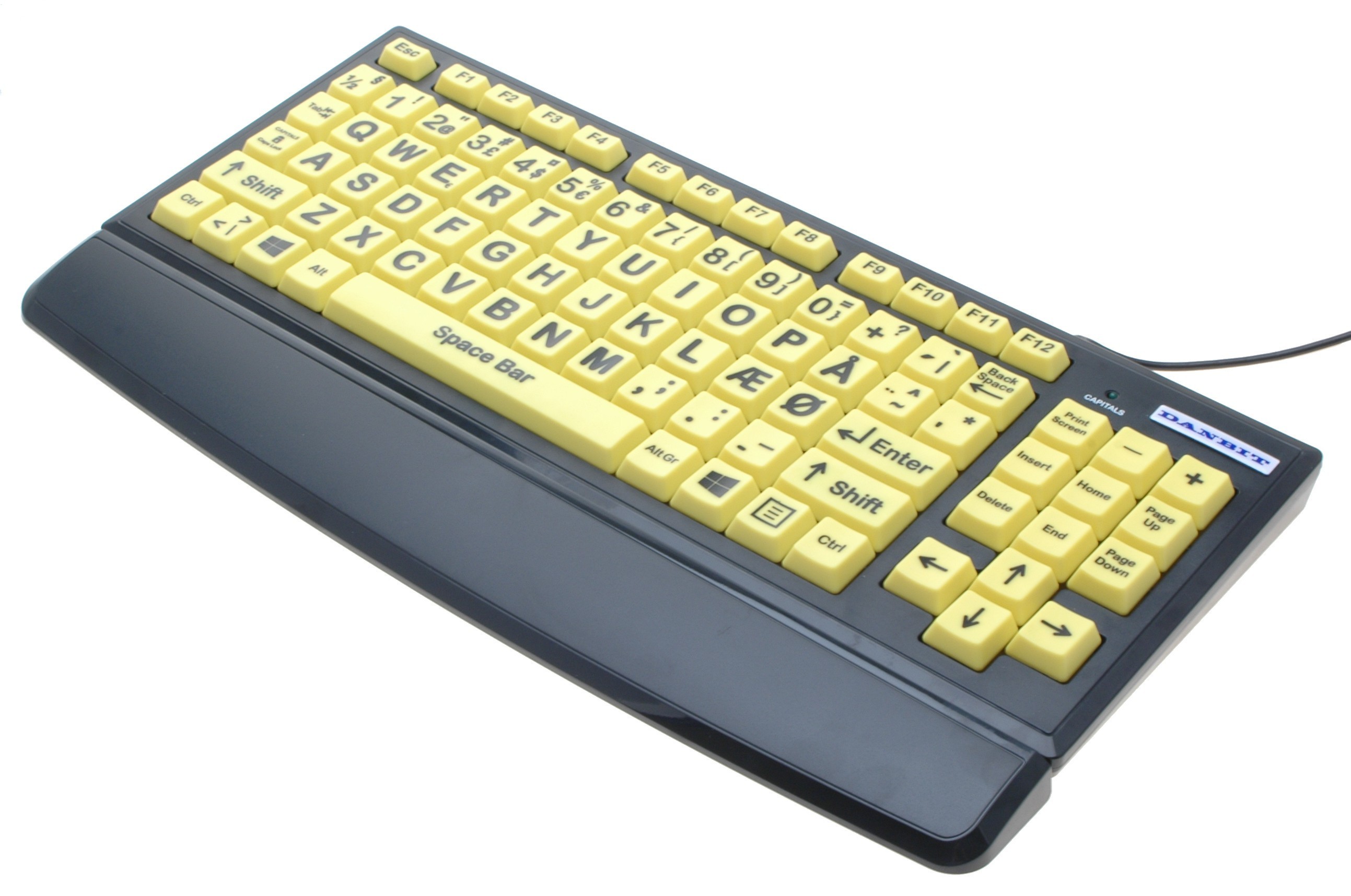 Tastatur med store taster til svagtseende - USB Plug & Play (Dansk Layout), gule taster