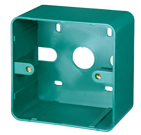 Plast hus til EXIT-knapper, 85 x 85 x 48 mm. Bagstykke til EXIT knap. Gummipakning, 20 mm center-hul