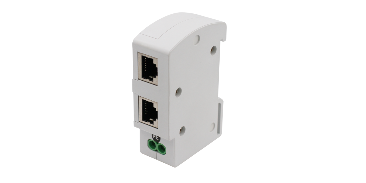 RJ45 Surge Protector, PoE 10/100/1000Mbit. 0,2dB tab. 2,5kA, DIN-montering.
