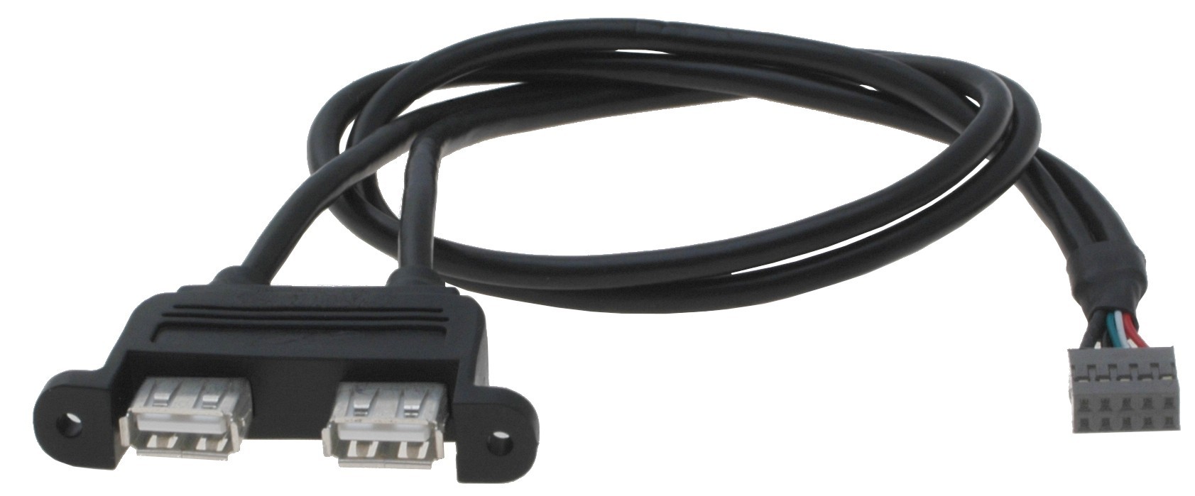 USB2X4AMF-5PIN Med 2 faste USB udtag, type hunstik til fx selvbygget IT projekter, panel PC'er m.m.