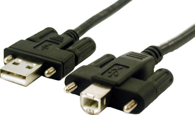 USB-kabel, A han - B han med fingerskruer til fastgørelse, sort, 5 m