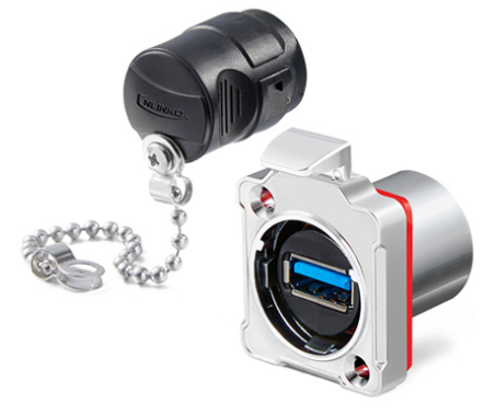 Vandtæt USB 3.0 hun stik med flange til chassis, IP68 tæt med hætte, USB hun/hun