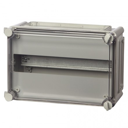 IP65 plastkabinet til vægmontering, polycarbonat, DIN-skinne, 280 x 190 x 130mm, -40 til +120°C