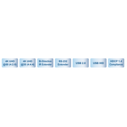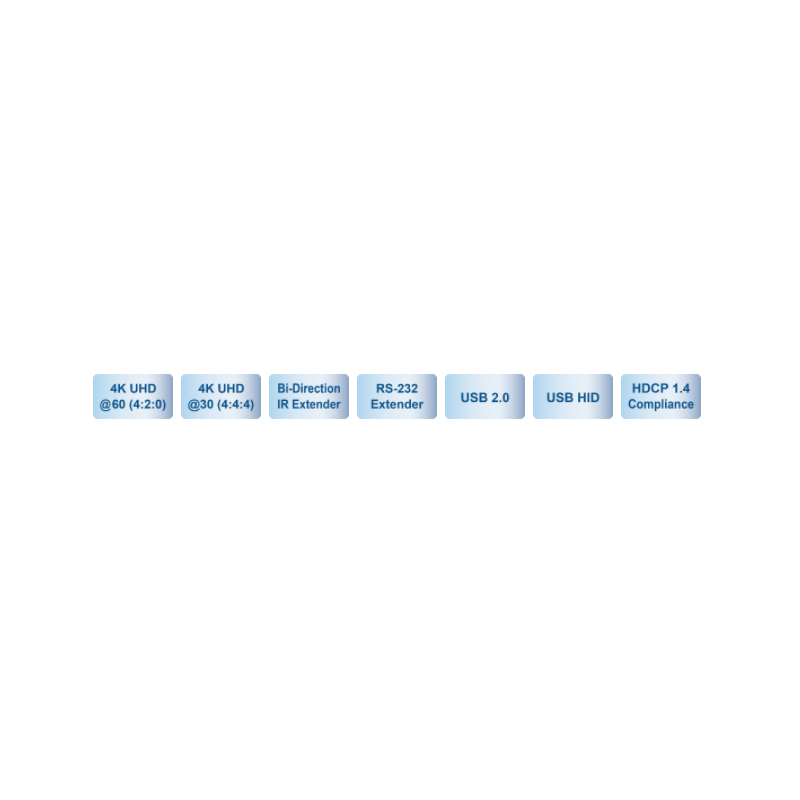 4K@60Hz 4:2:0 eller 4K@30Hz 4:4:4 HDMI KVM Extender, 4 x USB, RS232, IR over Cat. 6a/7 op til 100 meter. 12VDC