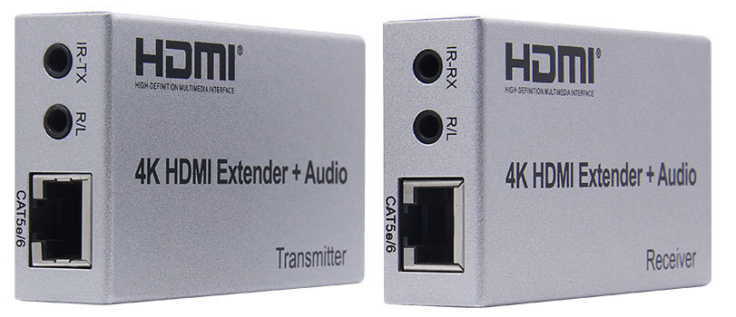 HDMI Extender 4K@30Hz op til 100 meter med lyd input, IR, CAT5e, CAT6 - sender og modtager