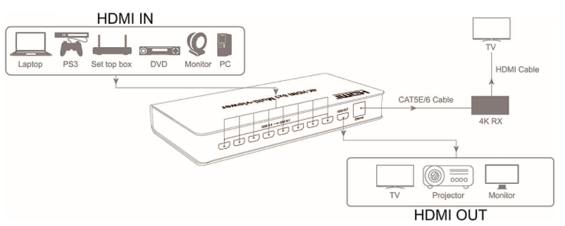 8 x HDMI input til 1 HDMI output