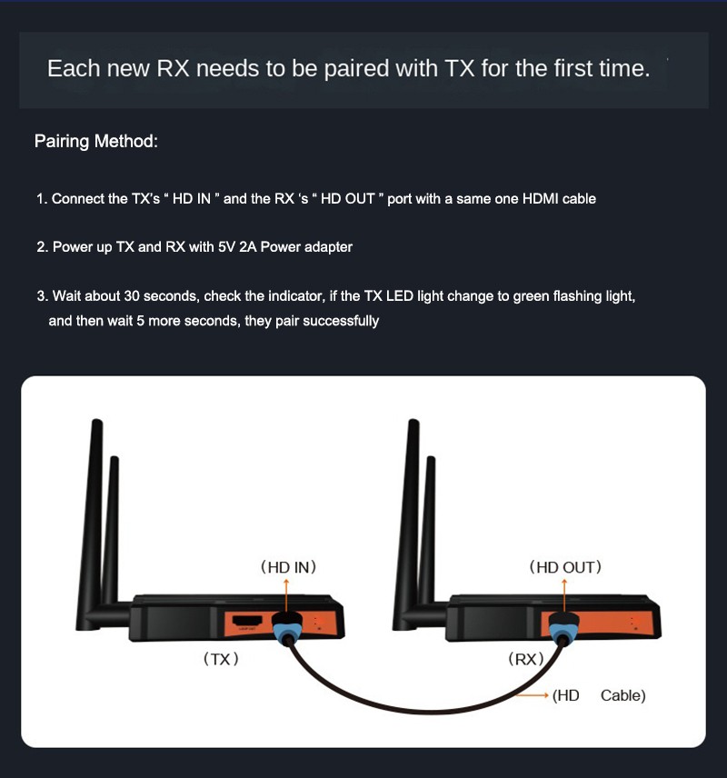 Den understøtter fuld HD 1080P trådløs transmission. Intet behov for ekstra kabelboks, ingen grund til at installere driver.