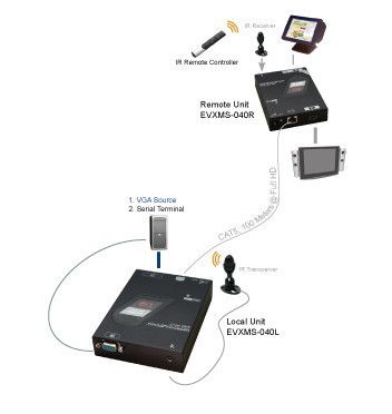 EVXMS-M040 (HDMI), HDMI Extender over CAT5 med ekstern RS232 funktion