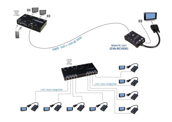 Don't need any Hub can extend high definition video signal up to 100M over CAT5 (One by One)