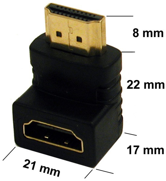 HDMI A han - En hun, 90 graders vinkeladapter med guldstik