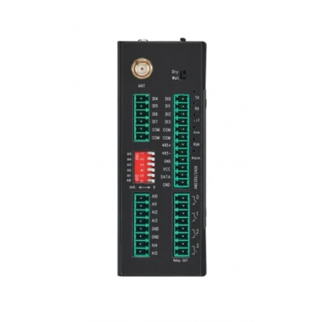 It is equipped with an RS232 plug + one additional plug for debugging and power supply plug.