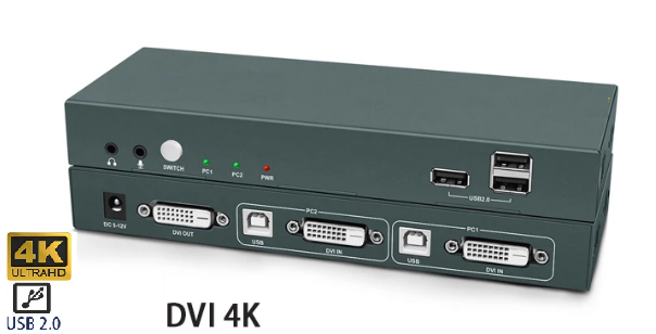 2 port KVM switch with DVI, USB and audio 4K @ 30Hz